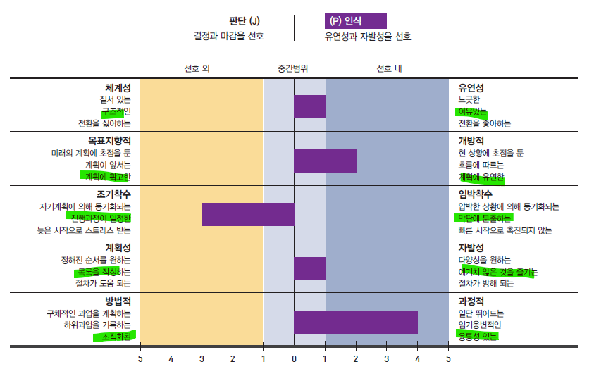 아래 보시는 것 처럼, 이 친구는 ENFP인데, E는 분명이고, 우리가 보고 있는 "인식(P)" 지표는 "보통"임을 알 수 있죠?