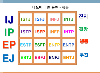 왼쪽은 MBTI 에서 말하고 있는 태도지표의 특성,